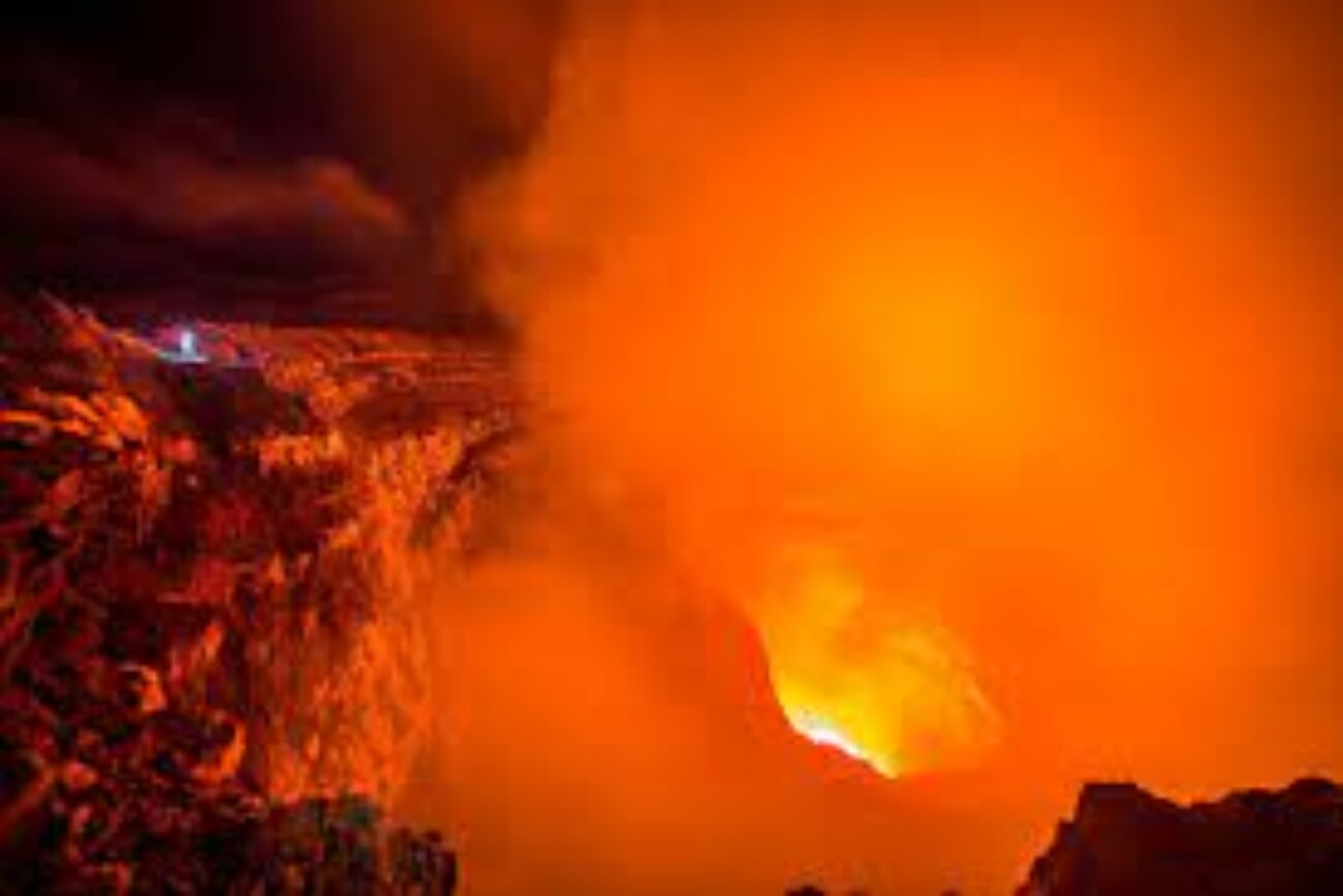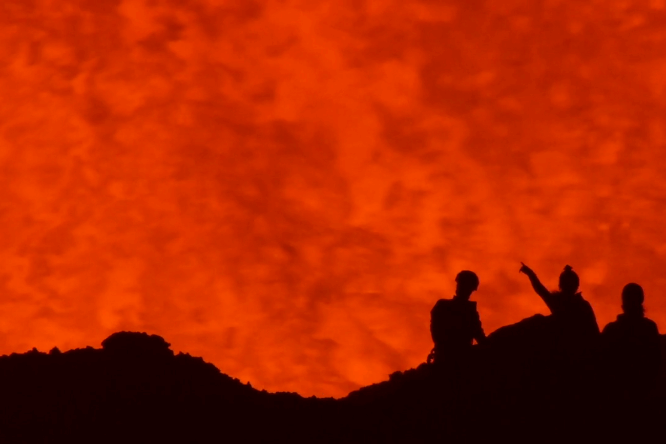 A group of climbers attempt to descend into an active volcano to get as close as possible to the spitting lava lake. They brave poisonous gasses and searing heat climbing into the earth.